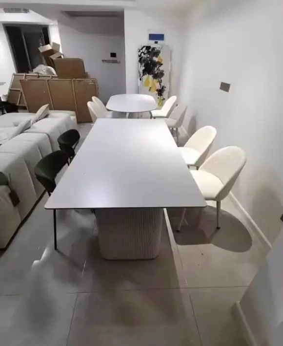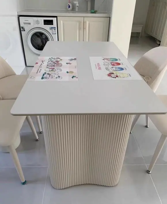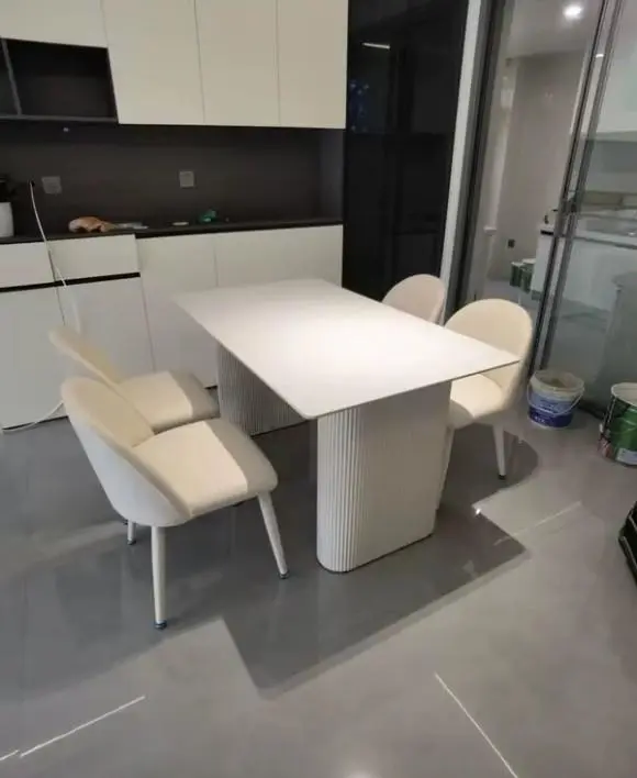 Bring minimalist luxury to your space with this fluted column base dining table, crafted from sintered stone and MDF. This affordable design offers timeless appeal for modern interiors. Perfect as a breakfast room table, it comfortably seats 4-8, making it ideal for both casual meals and dinner parties. The rectangular shape complements various dining table setting styles, while the clean silhouette suits both dining tables sets and chairs and dining table combinations. A stylish option for those seeking dining table sets that blend elegance and function.