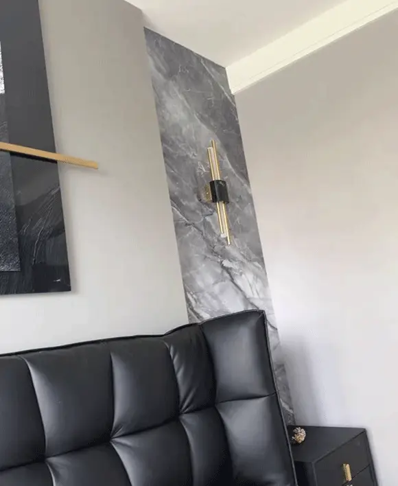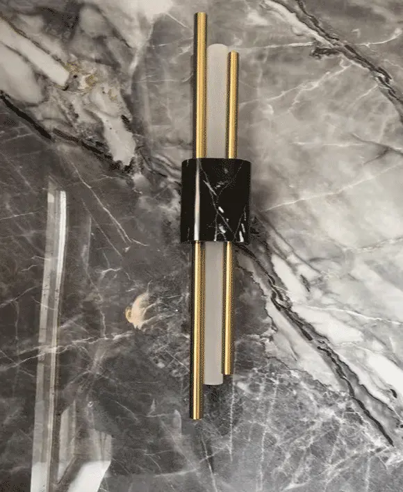 Light up the walls around you with the Stripe Wall light Lamp. Carved with excellence and perfection, the Lamp is handmade by the artisan to a level of perfection. The lamp is made up of two electroplated hardware Gold rods with an acrylic stick that illuminates, brightening up your room and mood whilst taking the beauty to a whole new level. In the middle, the marble body block looks artistic, giving a royal and luxurious look due to its magnificent details and fine finishing. Amazing wall décor for your bedroom, lounge, and hallway. Classic Style:This elegant wall lamp is perfect for modern styling or to maintain a simple, elegant atmosphere, perceive the attitude of artistic life, bringing an unexpected sense of modern warm atmosphere. LED light source, light transmission is soft and non-blinding, easy to clean, the lamp's stylish and simple appearance design meets the ultimate pursuit of modern people. Light does not directly irradiate the eyes, can better protect the eyes.High quality material: Selected iron + marble + acrylic, hard and reliable texture, the surface layer by multiple polishing hand rubbing process, coloring stability, beautiful and durable, easy to disassemble, easy to clean, modern and stylish wall lamp, provide warm lighting for your home.Widely Used: Suitable for any indoor lighting occasions, such as bedroom, kitchen, dining room, gallery, bar, beer house, artist studio, office, cafe, bar, club, reading corner, craft room, stairs, etc.