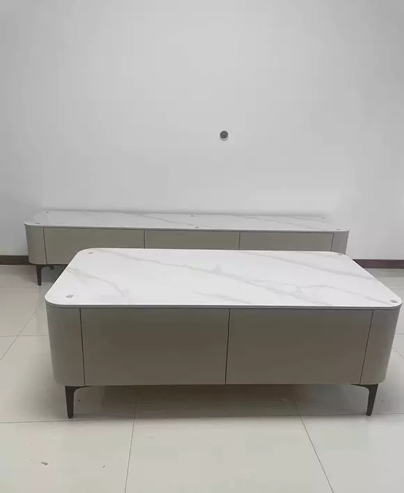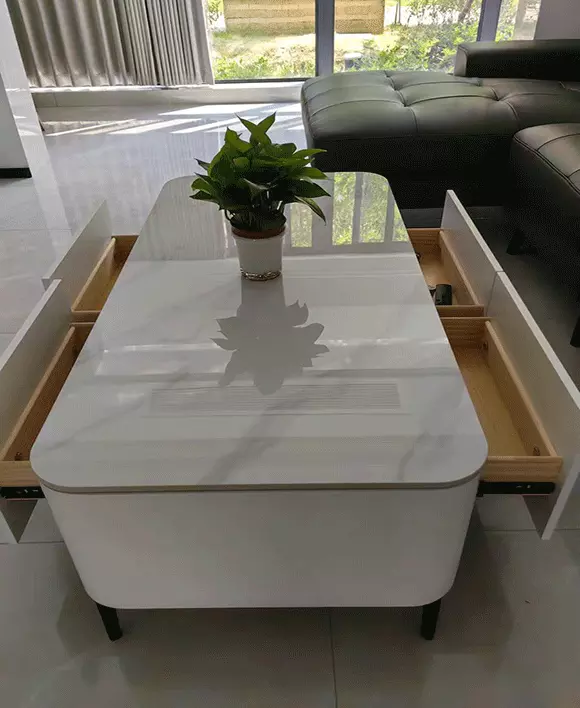 Minimalist Rectangle Sintered Stone Coffee Table with 4 drawers