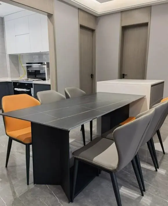 Minimalist Steel Sled Base Sintered Stone Top Dining Table More Colours and Sizes Customisable