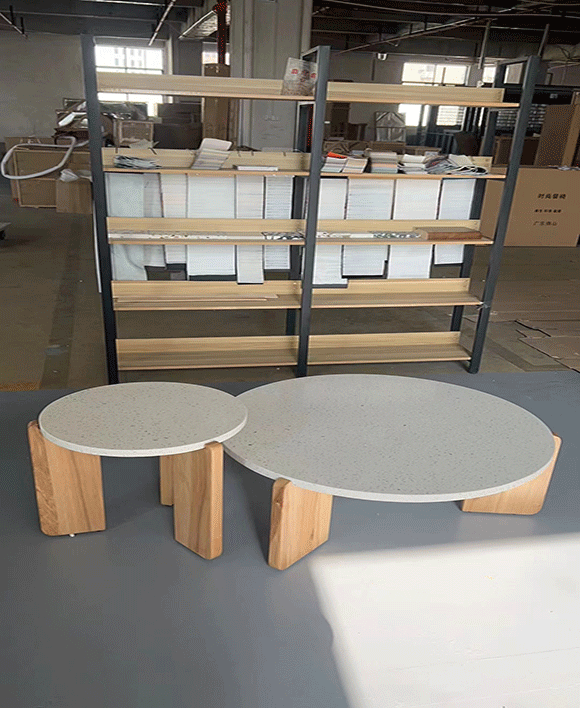 Minimalist Terrazzo Top Ash Wood Base Round Coffee Table