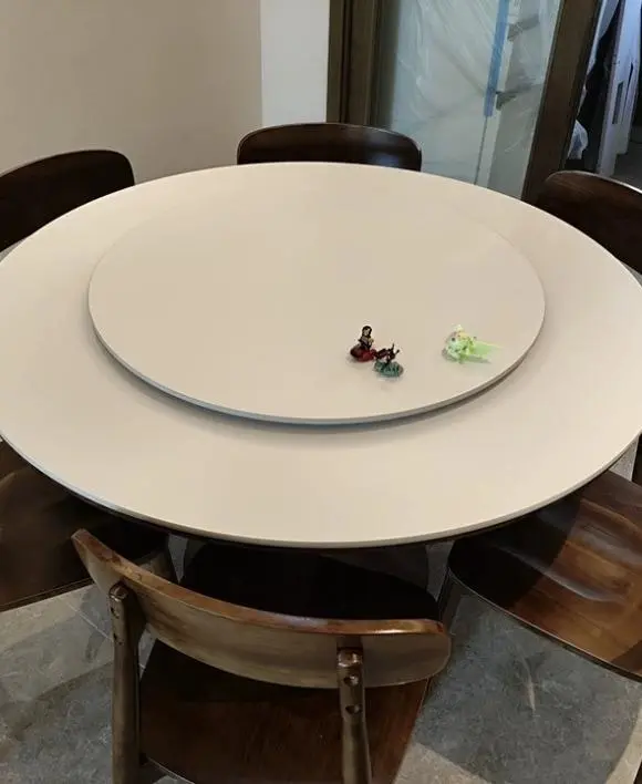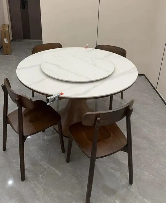 Minimalist Wood Tulip Base Sintered Stone Top Round Dining Table with Lazy Susan More Colours and Sizes Customisable