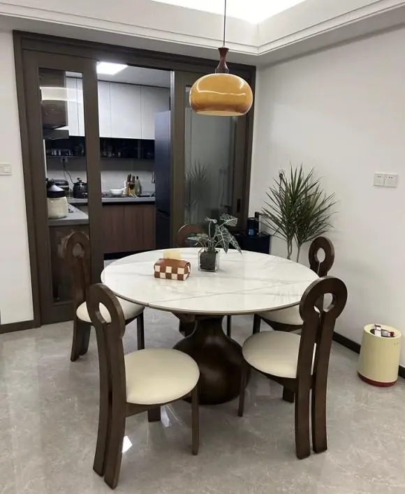 Minimalist Wood Vase Base Sintered Stone Top Extendable Round Dining Table More Colours and Sizes Customisable