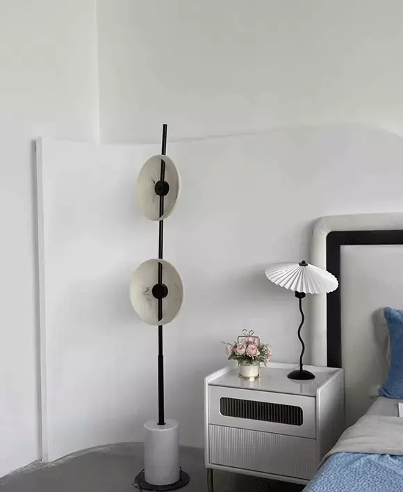 Minimalistic White Mito Style Disc Standing Light Marble LED Floor Lamp