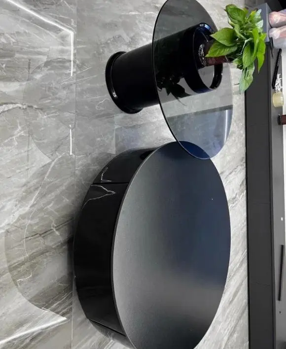 Modern Black Bull Round Coffee Table Set of 2