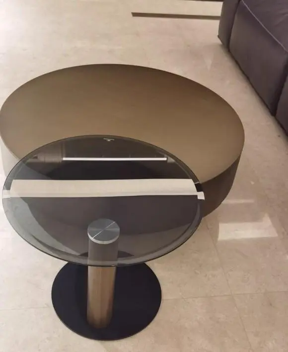 Modern Copper & Black Metal & Glass Round Coffee Table Set of 2