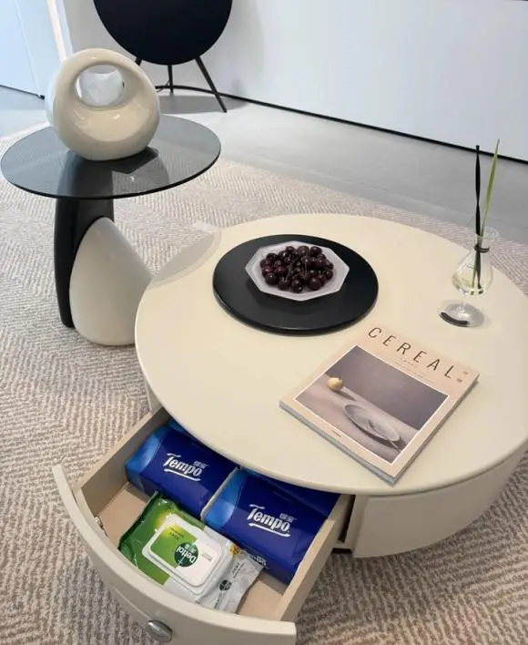 The Modern Full Moon Nesting Round Coffee Table With Drawer Set of 2 combines the beauty of wood and glass with smart functionality. The large white round coffee table with storage features a discreet coffee table with drawer, perfect for keeping remotes, books, and essentials out of sight, while the small glass coffee table doubles as a stylish side table or serving stand. Designed as a round nesting coffee table set, it offers flexibility for modern living rooms, apartments, or office spaces. Crafted from durable E1 grade timber and tempered glass, this set delivers a designer look at an affordable, budget friendly price, making it ideal for those seeking a modern round coffee table with storage that’s both stylish and practical.