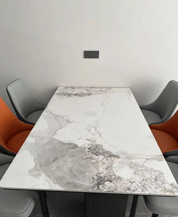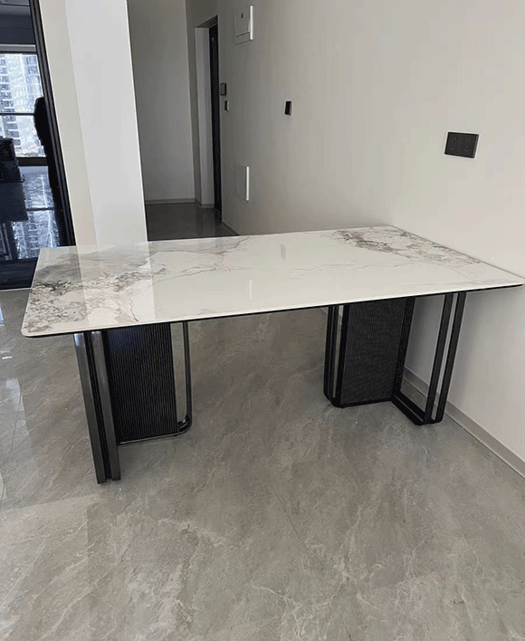 Upgrade your dining experience with our Modern Italian Style Sintered Stone Dining Table. This stunning table, available in 6/8/10 seats, features a sintered stone tabletop in the elegant combination of black and gold through its lustrous finishes. Sintered Stone undergoes a special heat-pressure treatment to strengthen it for duralility.The contemporary design adds a touch of sophistication to any dining room. With a choice of seating capacity and color options, such as Lauren White Gold and Armani Grey, you can create the perfect dining set that suits your style. Explore the fusion of affordability, high quality, and exceptional design with our Italian Style Dining Table today.