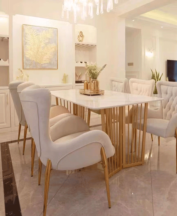 2PCS 3D Royal Curved Back Gold Dining Chairs More Colours Customisable