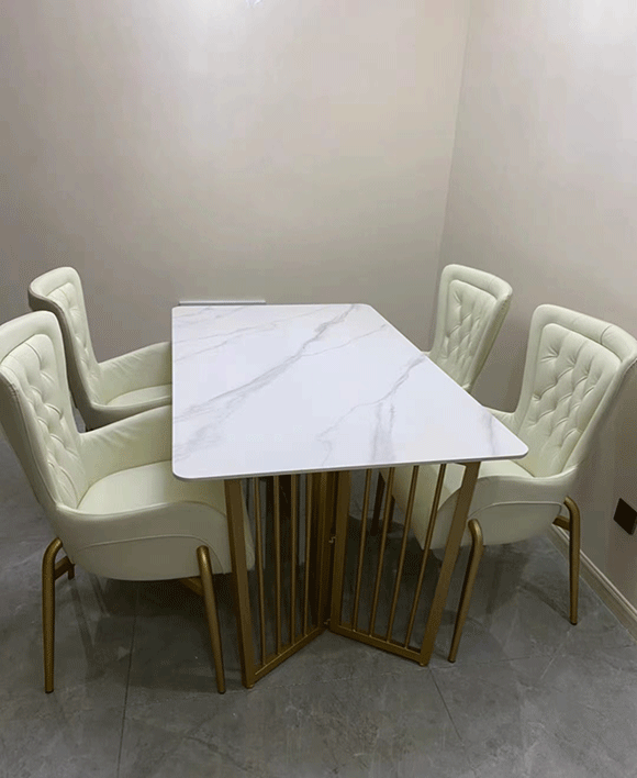 Upgrade your dining experience with our Modern Italian Style Sintered Stone Dining Table. This stunning table, available in 6/8/10 seats, features a sintered stone tabletop in the elegant combination of black and gold through its lustrous finishes. Sintered Stone undergoes a special heat-pressure treatment to strengthen it for duralility.The contemporary design adds a touch of sophistication to any dining room. With a choice of seating capacity and color options, such as Lauren White Gold and Armani Grey, you can create the perfect dining set that suits your style. Explore the fusion of affordability, high quality, and exceptional design with our Italian Style Dining Table today.