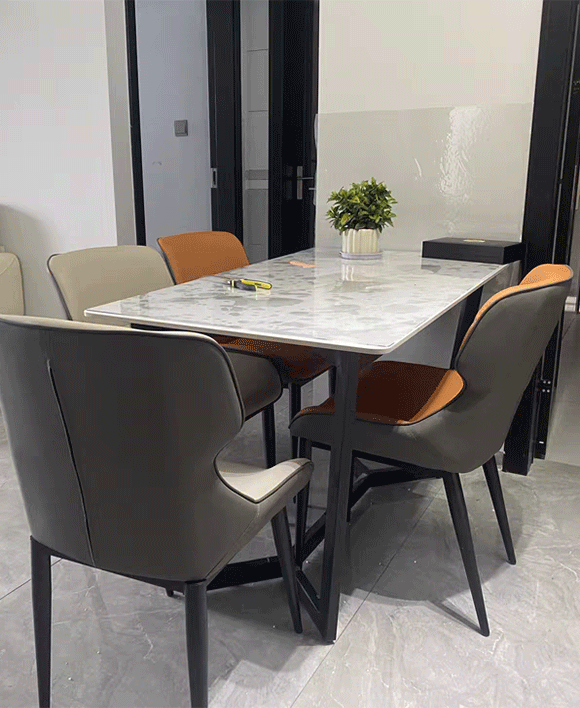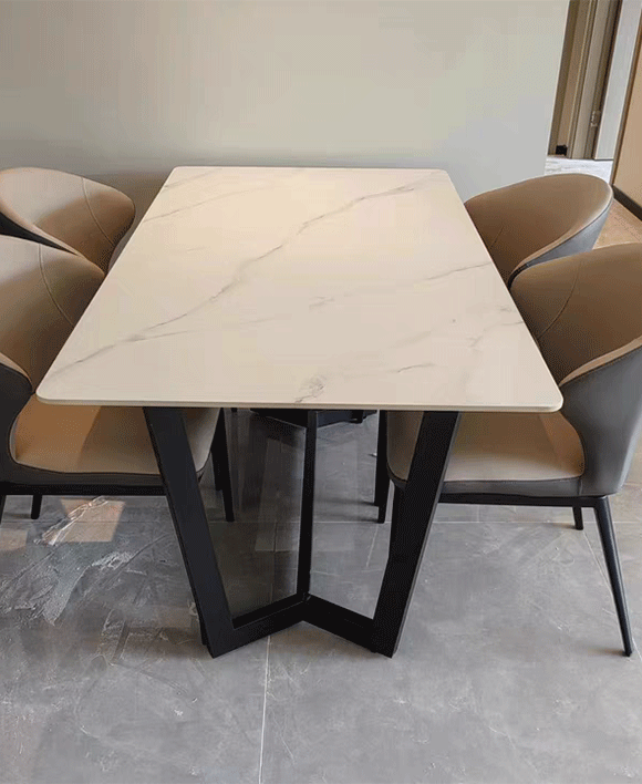 Upgrade your dining experience with our Modern Italian Style Sintered Stone Dining Table. This stunning table, available in 6/8/10 seats, features a sintered stone tabletop in the elegant combination of black and gold through its lustrous finishes. Sintered Stone undergoes a special heat-pressure treatment to strengthen it for duralility.The contemporary design adds a touch of sophistication to any dining room. With a choice of seating capacity and color options, such as Lauren White Gold and Armani Grey, you can create the perfect dining set that suits your style. Explore the fusion of affordability, high quality, and exceptional design with our Italian Style Dining Table today.