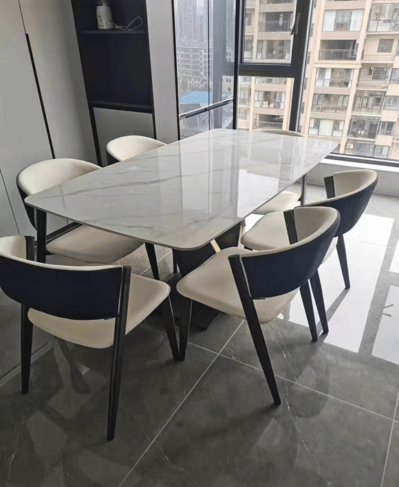Upgrade your dining experience with our Modern Italian Style Sintered Stone Dining Table. This stunning table, available in 6/8/10 seats, features a sintered stone tabletop in the elegant combination of black and gold through its lustrous finishes. Sintered Stone undergoes a special heat-pressure treatment to strengthen it for duralility.The contemporary design adds a touch of sophistication to any dining room. With a choice of seating capacity and color options, such as Lauren White Gold and Armani Grey, you can create the perfect dining set that suits your style. Explore the fusion of affordability, high quality, and exceptional design with our Italian Style Dining Table today.
