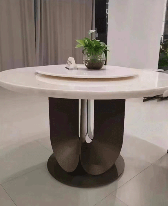 Modern Italian Style Sintered Stone Dining Table With Lazy Susan 6/8 Seats Model ND6149 Black/Gloss Brown
