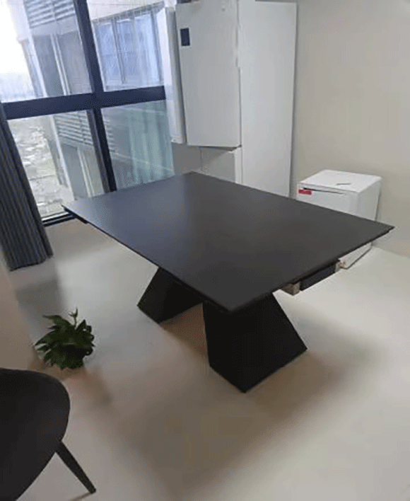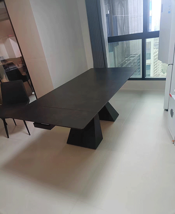 Designed with a bold black metal base, this table is most often paired with deep-toned stone finishes such as Vic Dark Grey, Armani Grey, or other sophisticated dark marble looks—adding an extra layer of modern luxury. The smooth extension system allows you to expand seating from 6 to 8, 10, 12, and up to 14 guests, making it the ultimate sintered stone extendable dining table for both intimate dinners and grand celebrations.