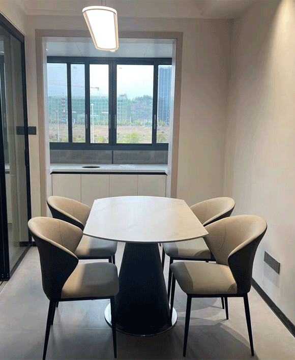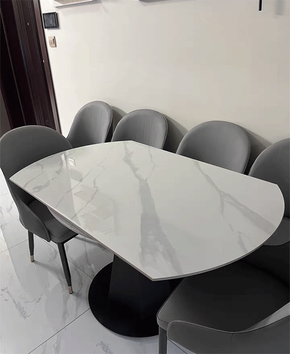 Offered in customisable size options and multiple colour choices, ND607-C works perfectly as a dining tables that extend for hosting or as a compact extendable dining tables solution for daily use. It’s a statement luxury sintered stone dining table that delivers affordable luxury with lasting durability.