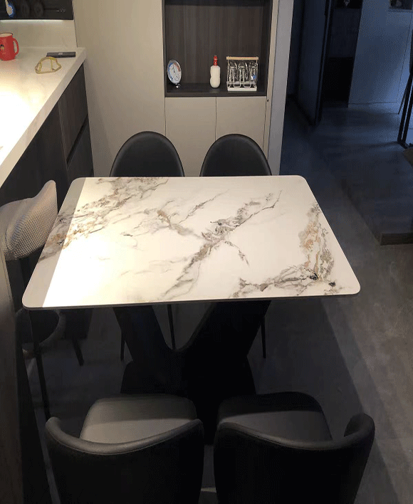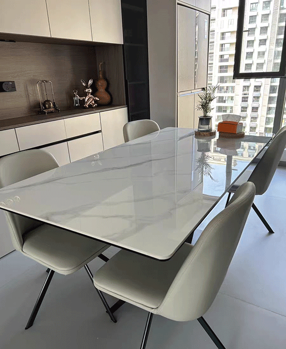 Upgrade your dining experience with our Modern Italian Style Sintered Stone Dining Table. This stunning table, available in 6/8/10 seats, features a sintered stone tabletop in the elegant combination of black and gold through its lustrous finishes. Sintered Stone undergoes a special heat-pressure treatment to strengthen it for duralility.The contemporary design adds a touch of sophistication to any dining room. With a choice of seating capacity and color options, such as Lauren White Gold and Armani Grey, you can create the perfect dining set that suits your style. Explore the fusion of affordability, high quality, and exceptional design with our Italian Style Dining Table today.