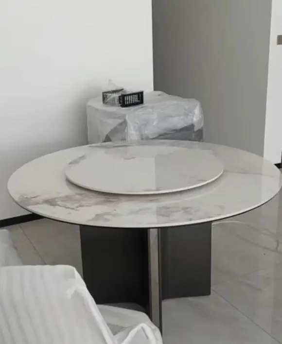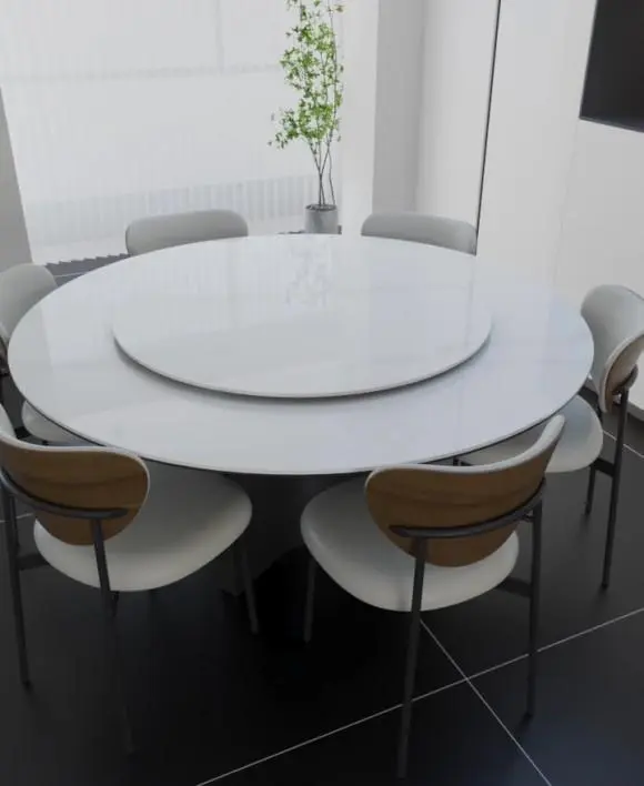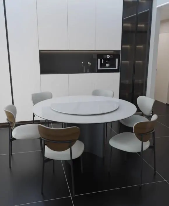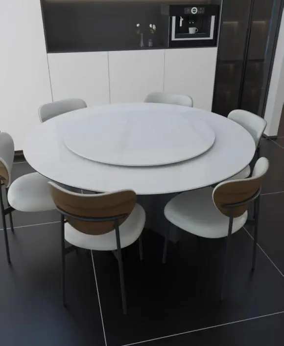 Modern Japandi Style Sintered Stone Round Dining Table with Lazy Suan More Colours and Sizes Customisable
