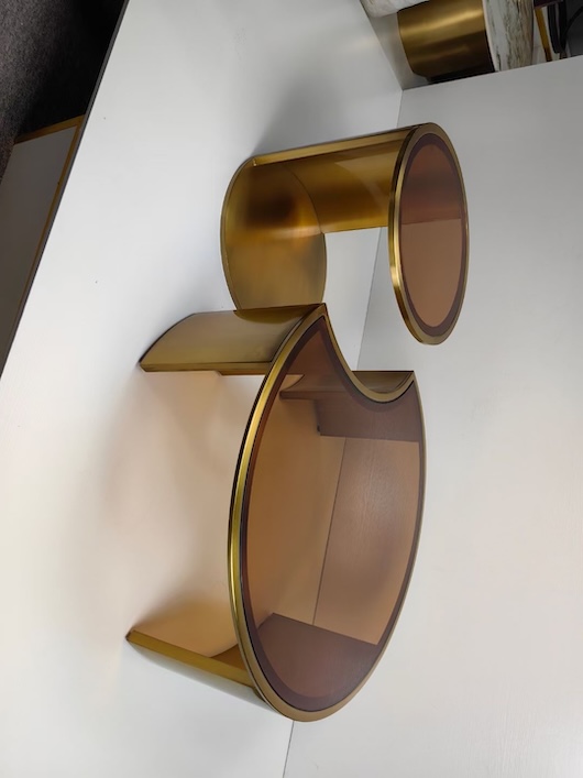 Modern Luxury Glam Italian Style Rose Gold Metal & Glass Round Coffee Table