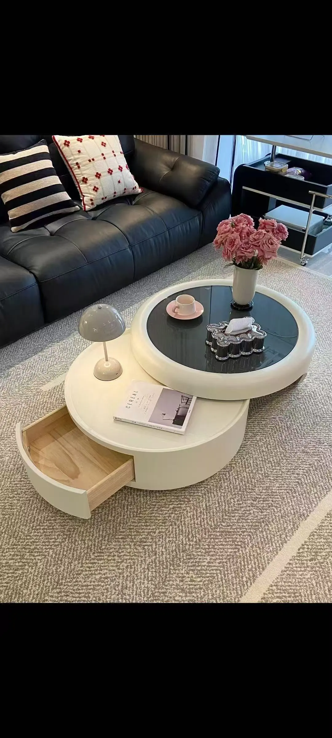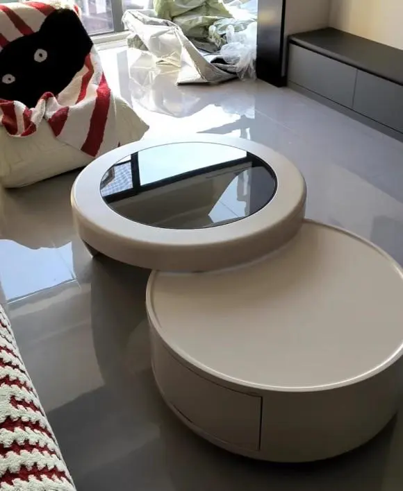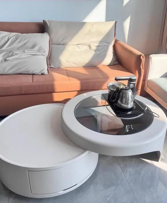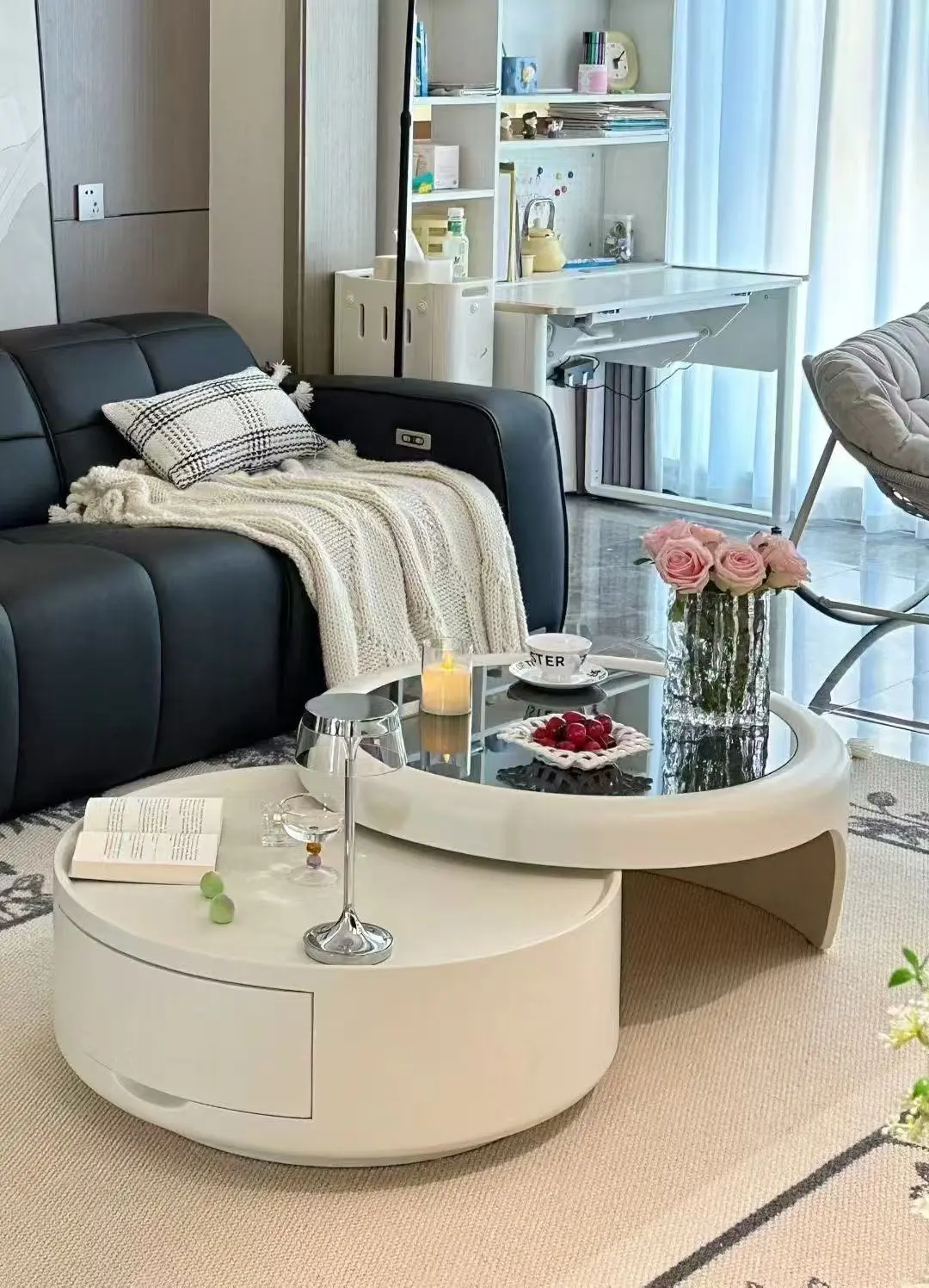Modern Nesting Tempered Glass Coffee Table with Drawer Set of 2