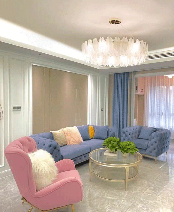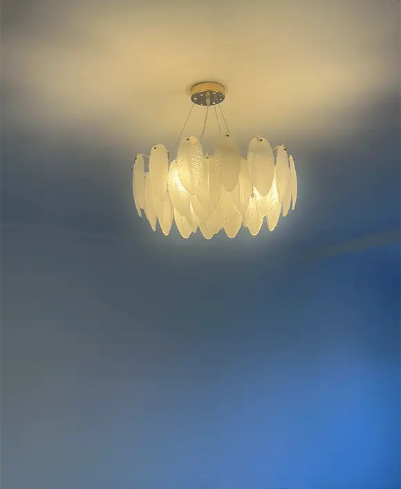 Feather-Shaped White Glass Chandelier (6-12 Heads)