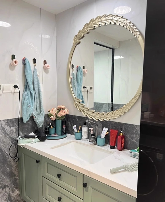 Ornate Retro French Style Oval and Round Framed Silver Wall Mirror brings timeless European elegance into your space. Available in antique gold or antique silver, these oval mirrors and round mirrors are designed in two size options each. With their intricately carved frames and reflective finish, they’re the perfect decorative mirrors and ornate mirrors for any bathroom, vanity, or hallway. This mirror on mirror wall mirror is bathroom-friendly thanks to the PU material, giving the appearance of a gold frame mirror without compromising durability. Whether you’re styling a classic powder room or adding flair to your bedroom, these wall mirrors blend history and glamour. Ideal for those seeking mirrors on sale with distinctive French character and charm.