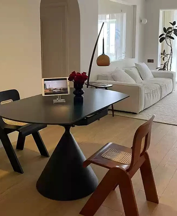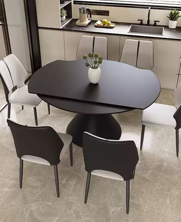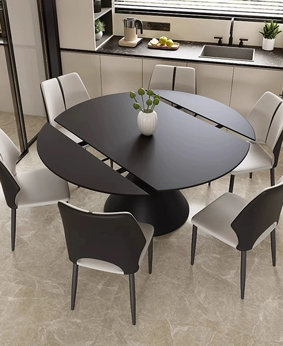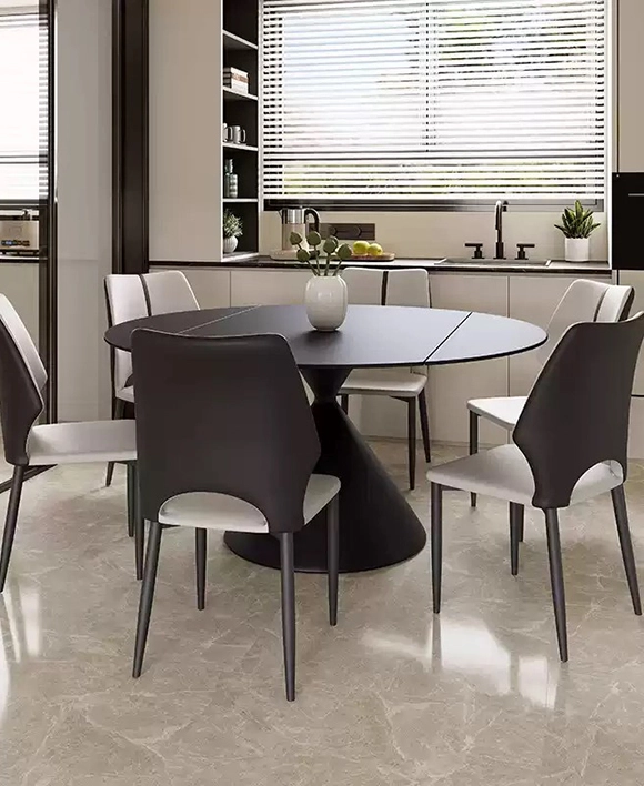 Discover the perfect blend of style and adaptability with the Pion Style Sintered Stone Extendable Round Dining Table—a designer sintered stone dining table that redefines modern elegance. The round sintered stone top is heat-resistant, scratch-resistant, and easy to clean, making it ideal for breakfast room tables, family gatherings, or formal entertaining.