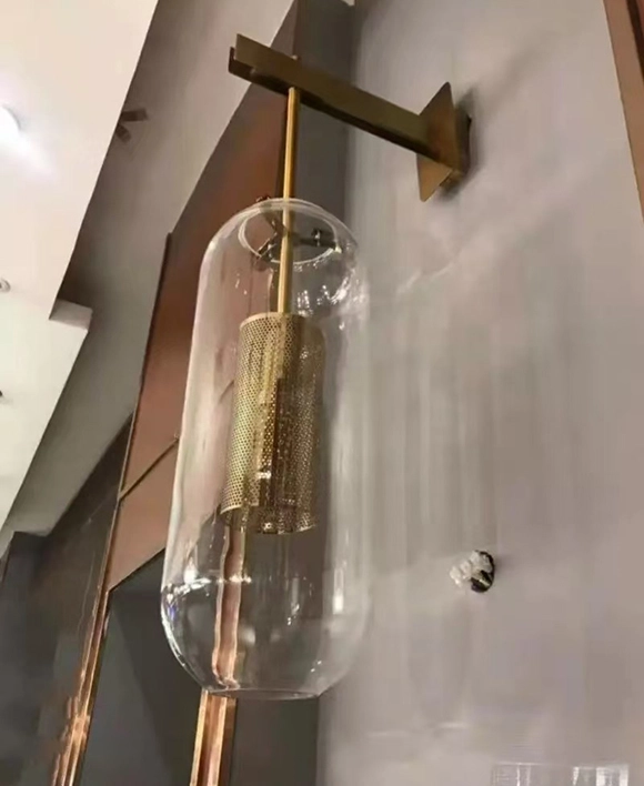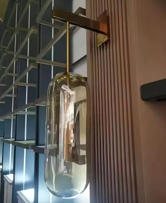 Upgrade your space with this post-modern wall light sconces, featuring a gold cylinder glass shade for a modern, elegant glow. Perfect for bedroom wall lights, hallways, and living rooms, this wall light for bedroom blends contemporary style with ambient lighting. Whether used as a wall lamp sconce or accent lighting, it adds a sophisticated touch to any interior. Available in custom finishes to match your décor.