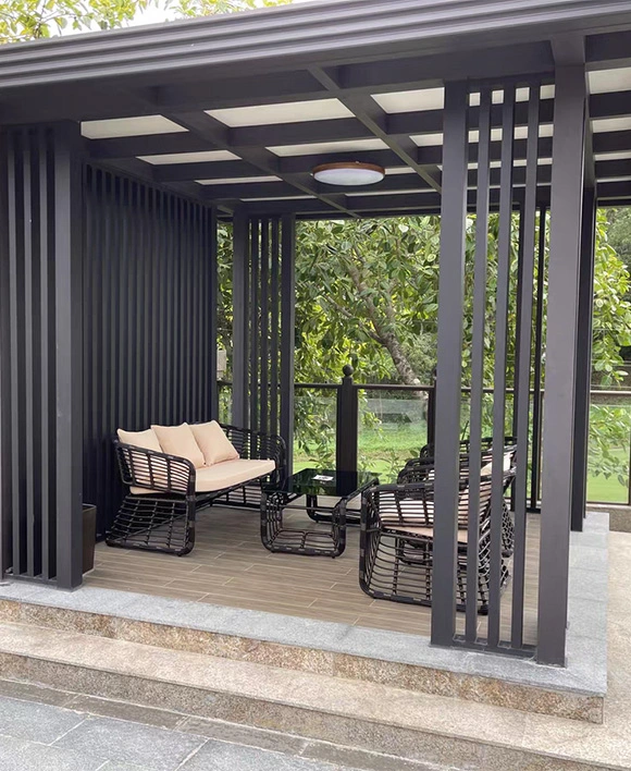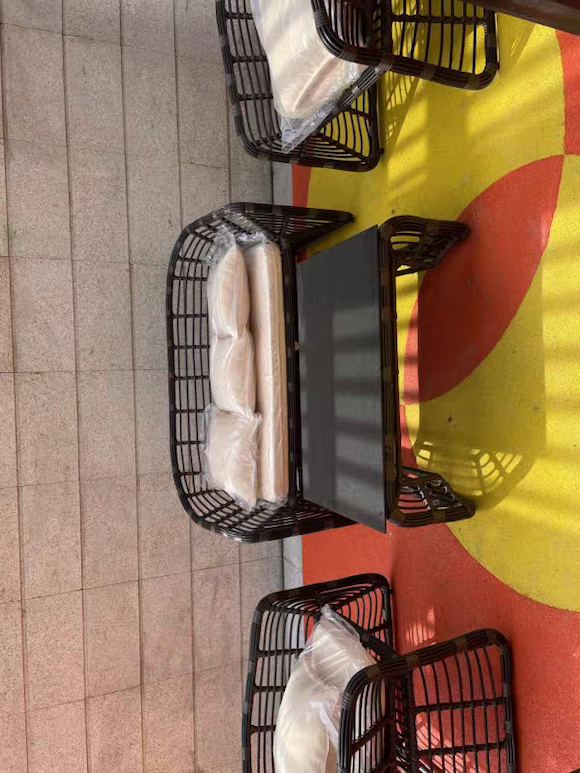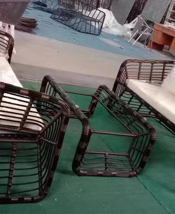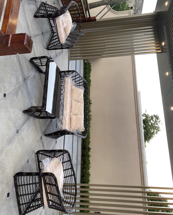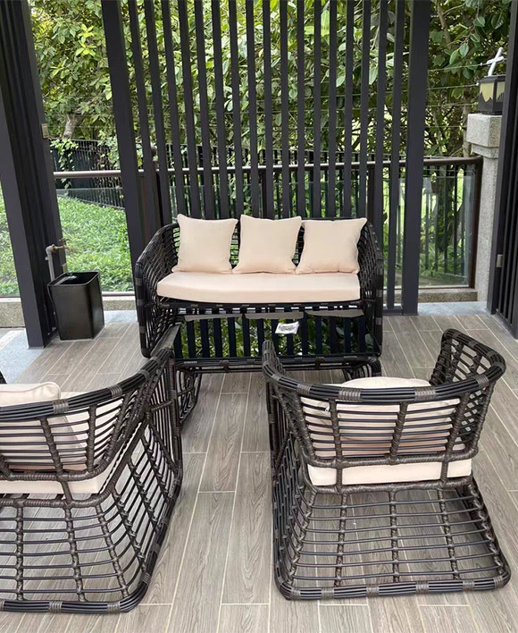 This well-designed set is made of durable iron/aluminum and PE to ensure long-lasting use. The versatile set comes with a 1-seater seat, 2-seater seat and 3-seater sofa, all with removable cushions for easy cleaning. Also comes with a matching table, perfect for your outdoor living space. Affordable and high quality, this sofa set is a great addition to any outdoor setting.
