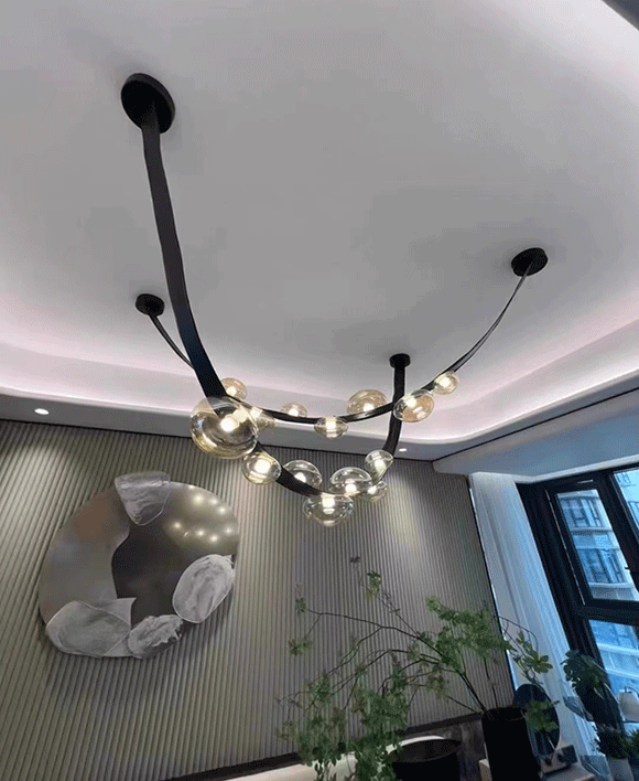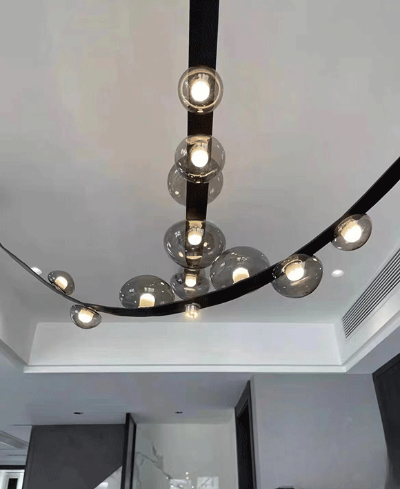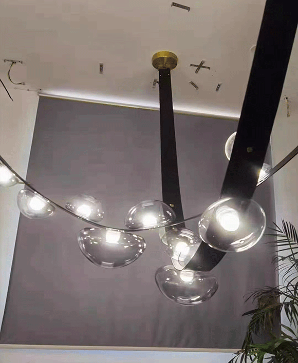 Postmodern Drops Pearl Black Leather Glass Pendant Light