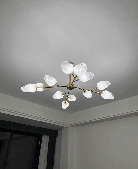 Opal Frosted Glass Tulip Bud Chandelier in Gold (6-18 Heads)