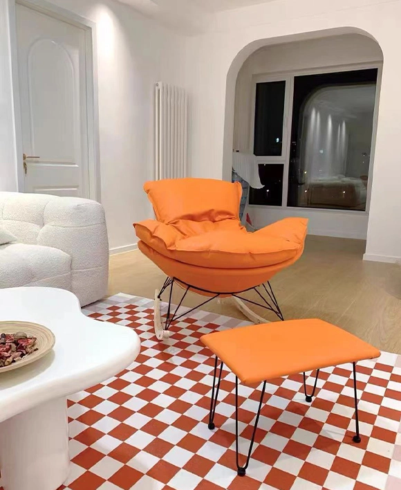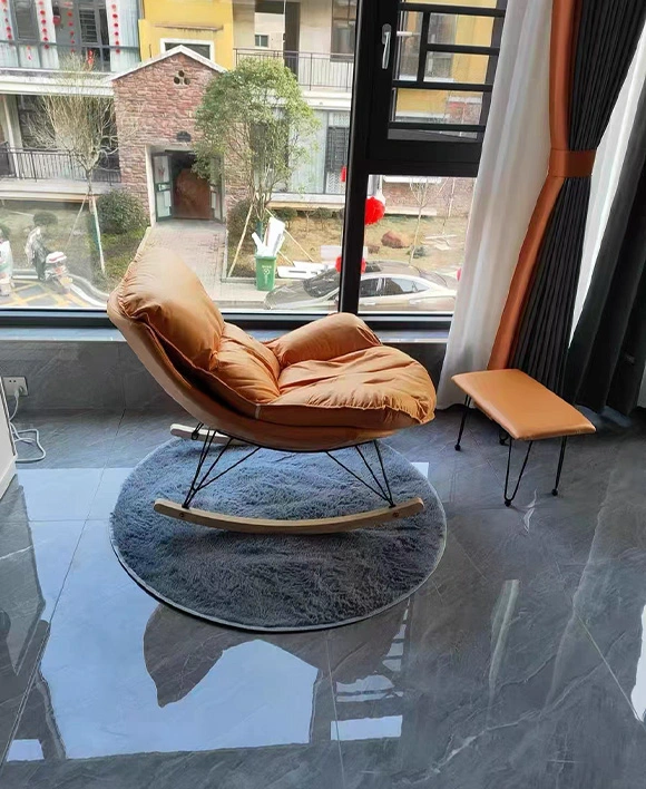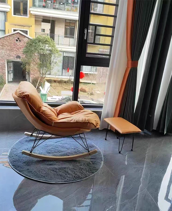 Postmodern Vintage Style Lazy Comfortable Rocking Chair with Ottoman