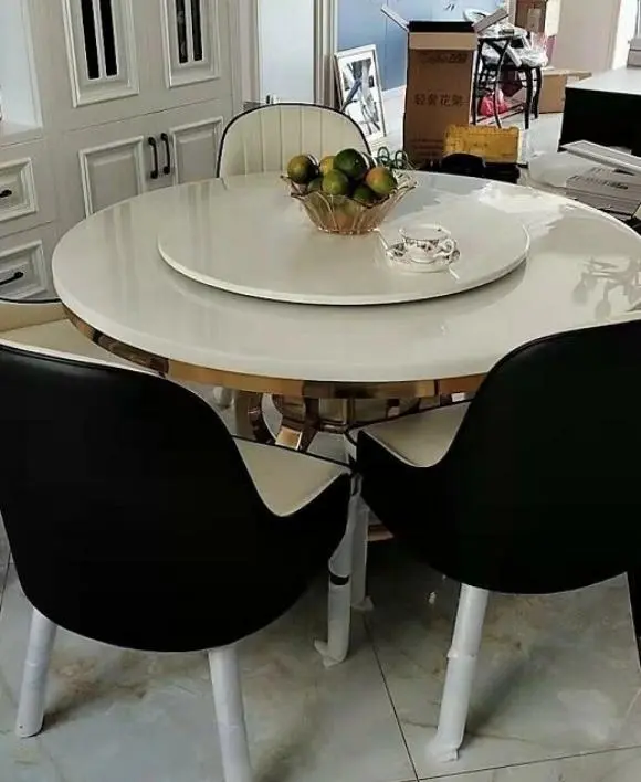 Regal Gold Ribbon Base Sintered Stone Round Dining Table with Lazy Susan More Colours & Sizes Customisable