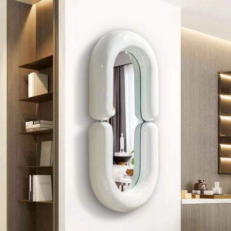 Vintage Style Framed with Beads Oval Silver Wall Mirror