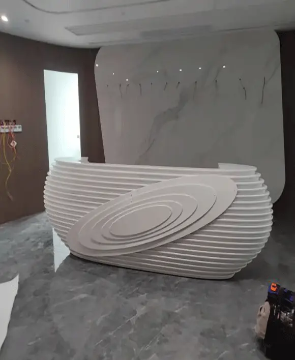 Make a bold statement with our stylish reception desk featuring a luxurious shell-inspired silhouette and ultra-sleek contours. Perfect for upscale offices and premium entryways, this reception desk for office combines futuristic design with high-end craftsmanship.