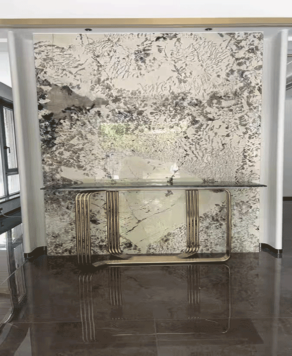 Sled Base Metal and Stone Console Table with Electroplating Finish