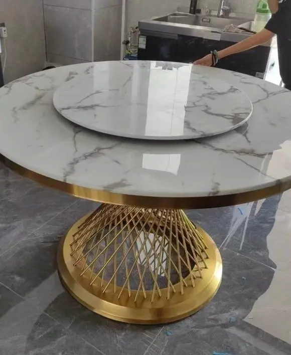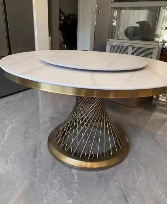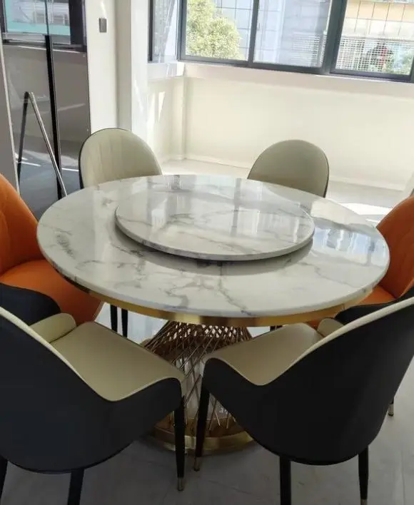 Sprial Base Luxury Round Sintered Stone Dining Table with Lazy Susan More Colours & Sizes Customisable
