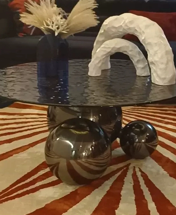 Three Metal Ball Base Sintered Stone Round Coffee Table