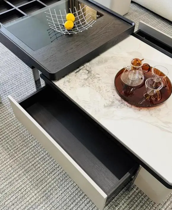 Two in One Modern Rectangular Coffee Table with Stools and Drawers