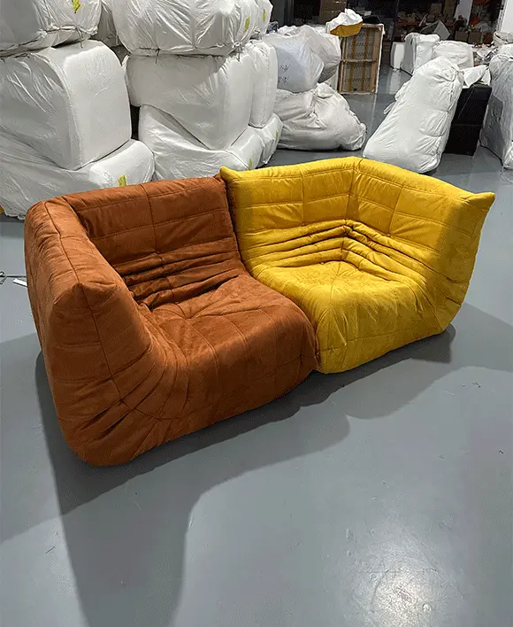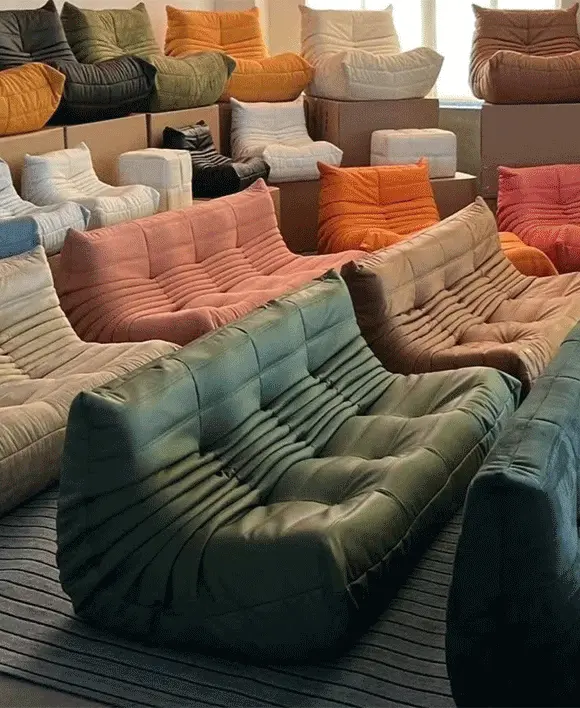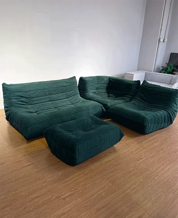 Vintage Togo Velvet Chaise Lounge Compressed Sofa Modular Sofa with Cost Saving Design
